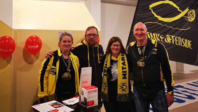 Hierbei kamen rund 480 € zusammen, die an die DKMS übergeben wurden. Hierüber freuten sich die Organisatoren zusammen mit Petra Stüker vom BVB.